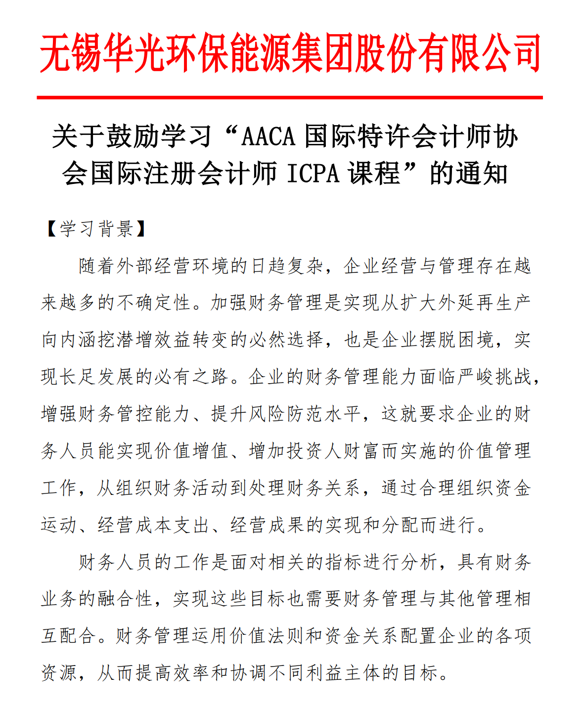 无锡华光环保能源集团股份有限公司发文鼓励学习ICPA国际注册会计师