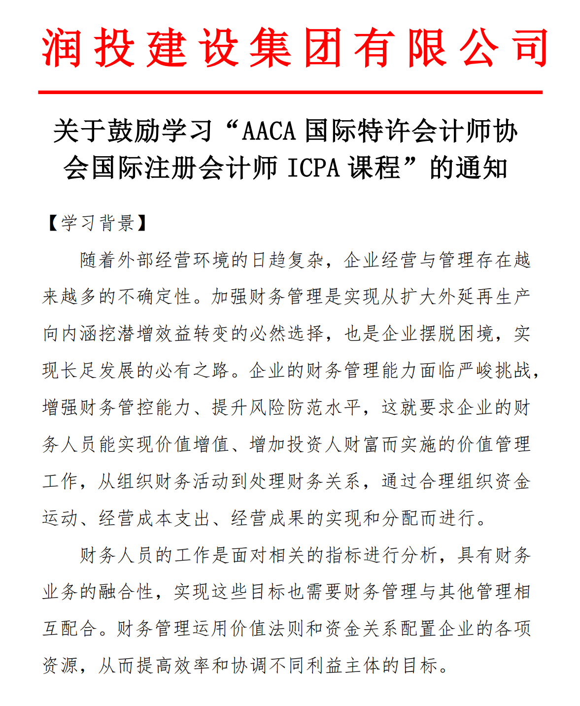 润投建设集团有限公司发文鼓励学习ICPA国际注册会计师