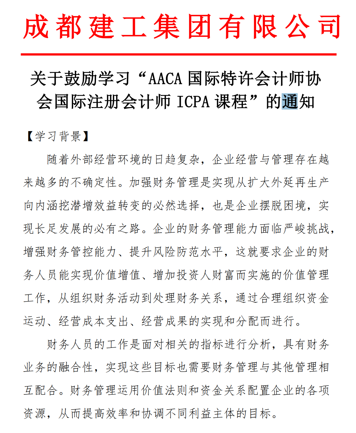 成都建工集团有限公司发文鼓励学习ICPA国际注册会计师