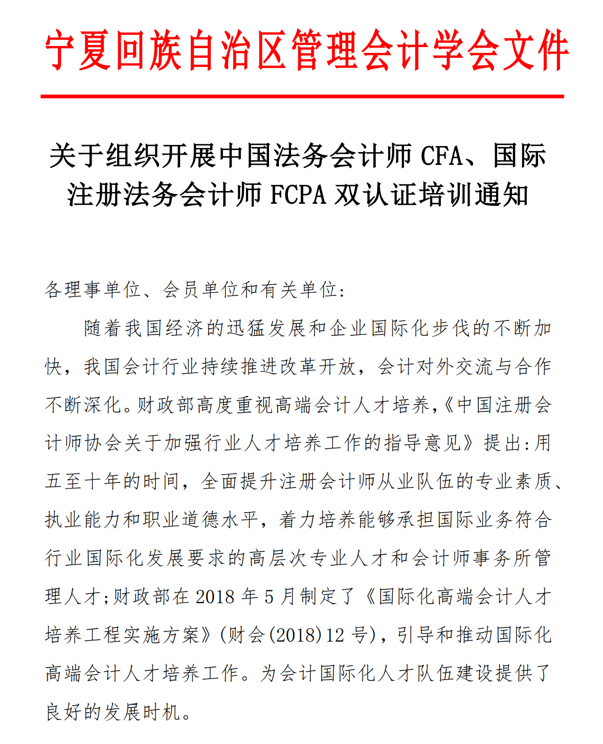 宁夏管理会计学会关于组织开展国际注册会计师ICPA、国际注册法务会计师FCPA认证培训的通知